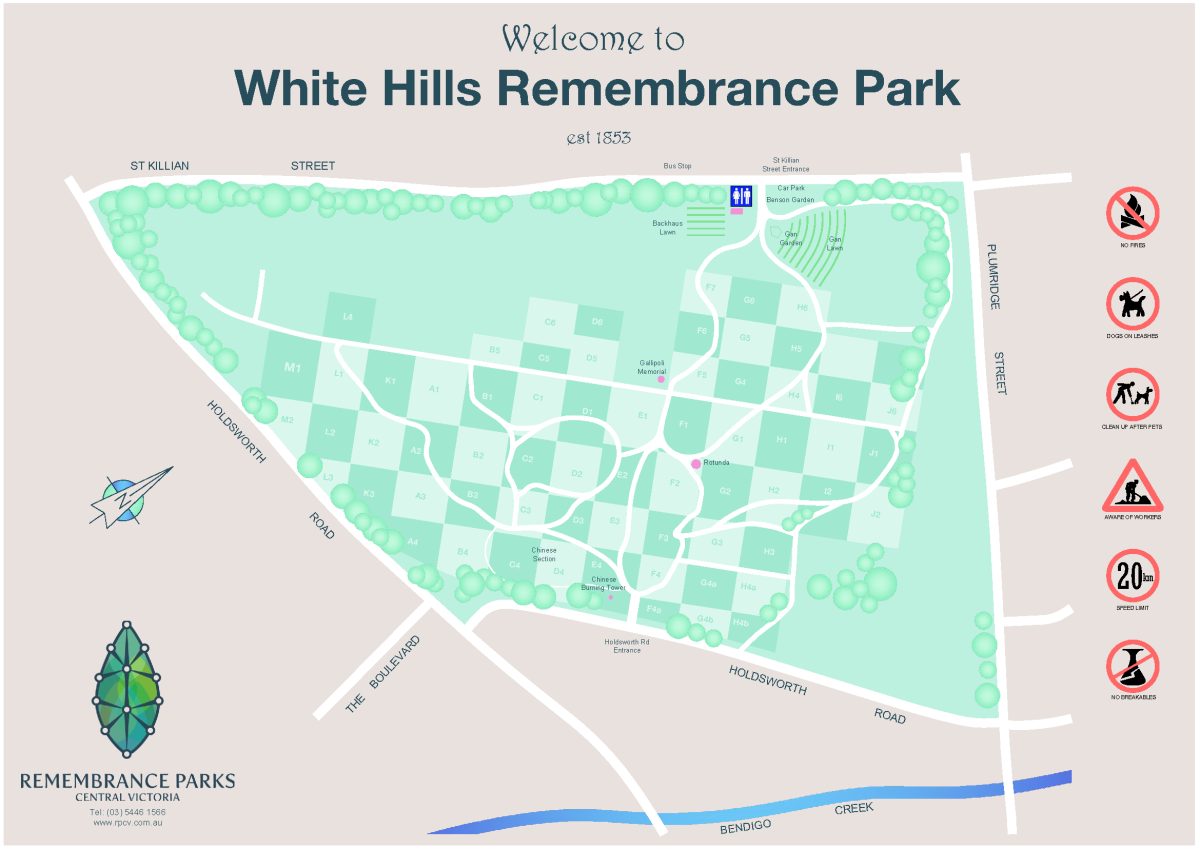 Of particular significance is the site’s Chinese burial section, with the large number of burials here evidencing Chinese migration to Victoria in the 1850s. White Hills Remembrance Park has the largest number of Chinese footstones in Victoria and a rare 1870’s Chinese Funerary Burner, a reflection of the religious customs and traditions practiced by the Chinese mining colony, and still utilised by members of the Chinese community today.